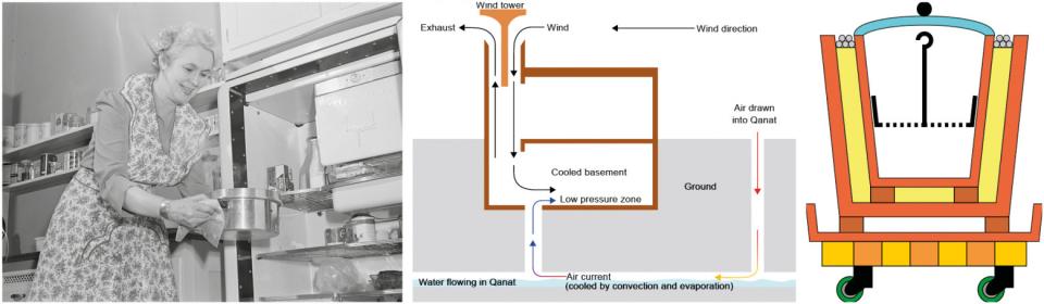 - Испарительные холодильники использовались в Древнем Египте, Древней Индии, Месопотамии и Древнем Риме.