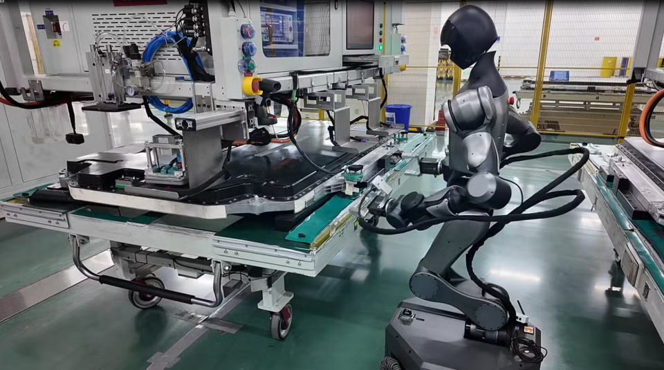 (The humanoid robot Xiaomo operates on the battery pack production line at CATL’s manufacturing facility in Luoyang, Henan province. Image credit: CATL)