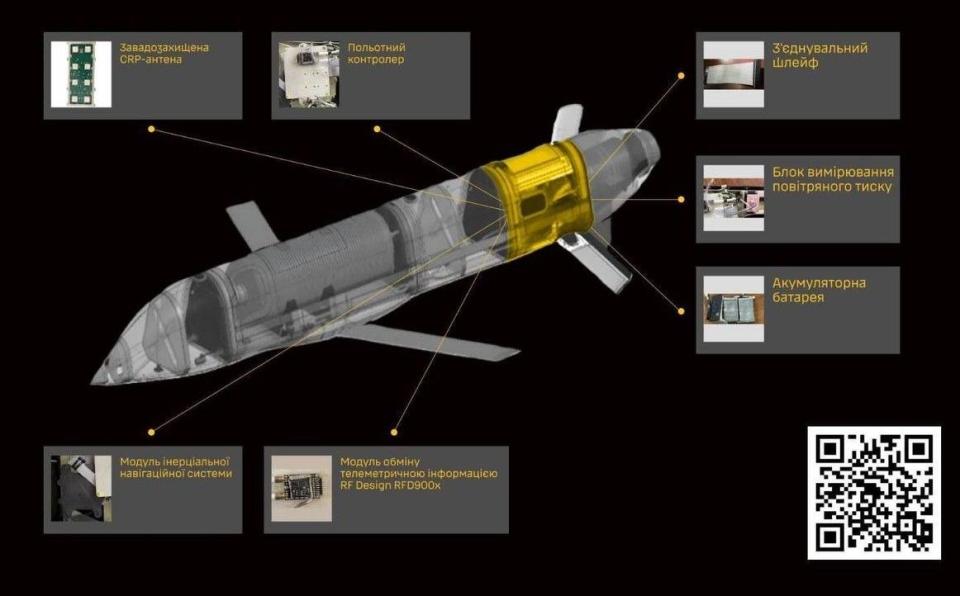 Ключевой элемент — реактивный двигатель Swiwin SW800Pro, китайского производства. Изначально он разрабатывался как модельный турбореактивный двигатель для радиоуправляемых авиамоделей. Несмотря на малые размеры и стоимость (около 16 тысяч долларов), он обеспечивает достаточную тягу, чтобы разогнать лёгкую ракету до 500 км/ч. Аналогично и другие компоненты — сервоприводы Dynamixel MX-64AR от южнокорейской Robotis, телеметрический модуль RFD900x (или китайская копия), аккумуляторы Murata, ИНС китайского производства — все они представляют собой коммерчески доступные решения двойного назначения, нередко изначально ориентированные на дроны и робототехнику, а не на военную технику.