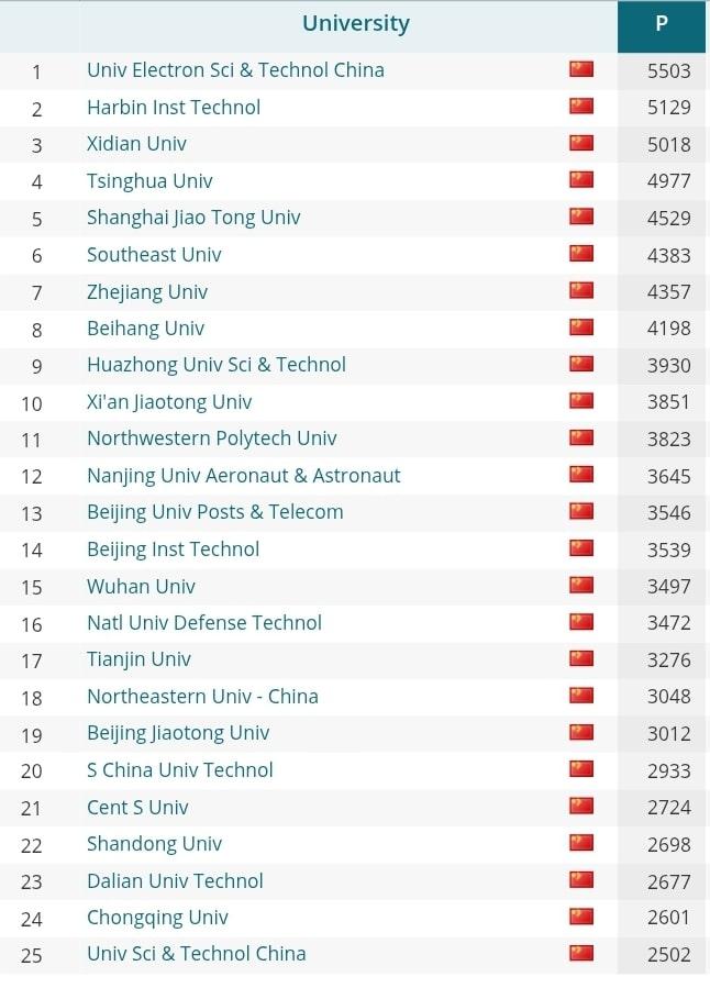 - В области физики и инженерии также доминируют китайские университеты, 24 из них входят в топ-25.