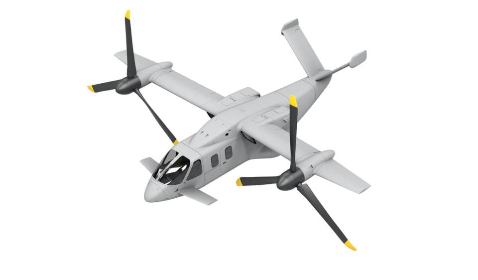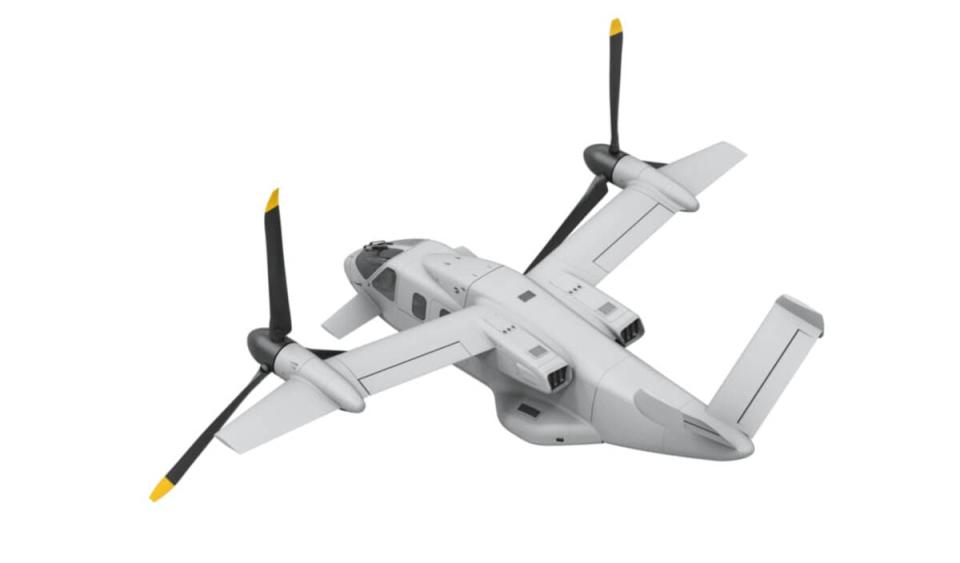 - Конвертоплан имеет прямое крыло, композитный фюзеляж и V-образное хвостовое оперение.