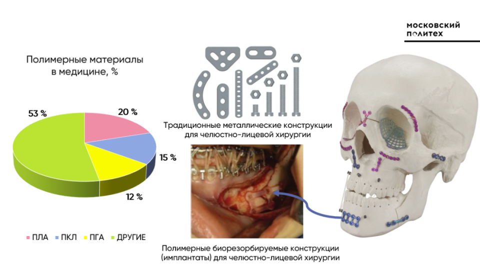 - Ученые Московского Политеха разрабатывают биорезорбируемые полимерные материалы для замены металлических пластин при лечении переломов нижней челюсти и восстановлении костей лица.