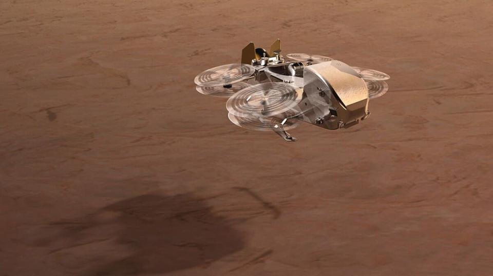 Художественное изображение Dragonfly на Титане / © NASA / Johns Hopkins APL / Steve Gribben