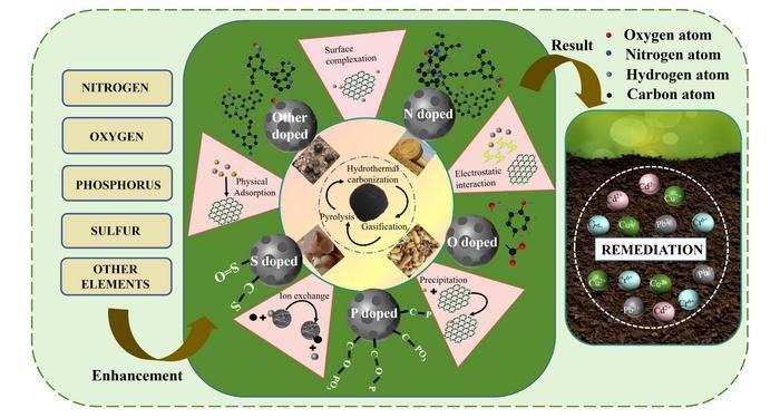 - Учёные улучшают биоуголь, добавляя азот, кислород, серу и фосфор для повышения его способности удерживать загрязняющие вещества.