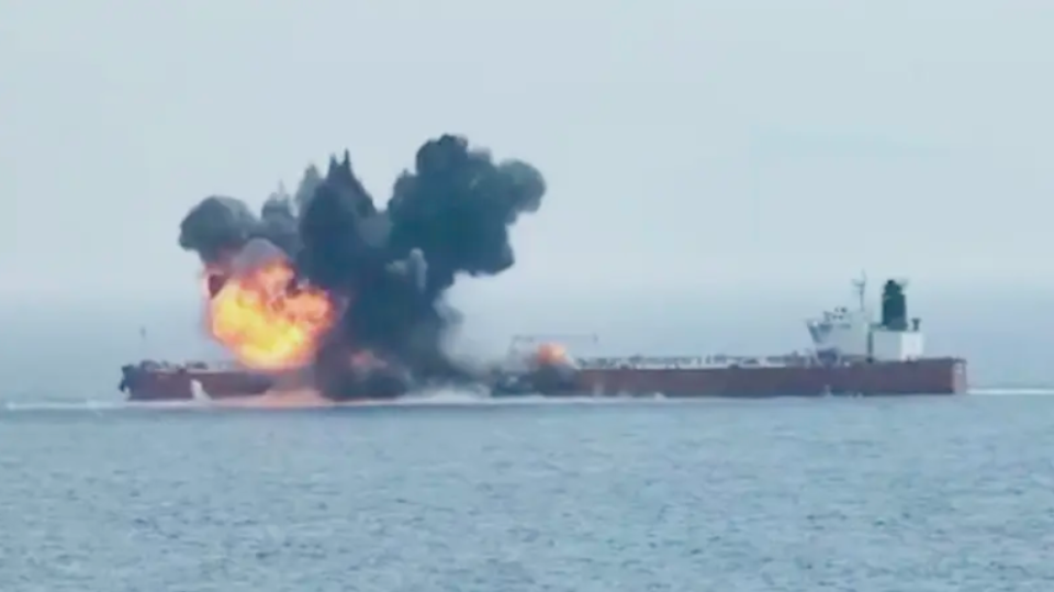 Танкер, пораженный йеменской ракетой. Фото: «Ансар Аллах»