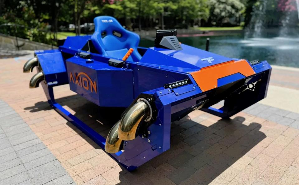 - Axion способен перевозить пассажира или груз до 80 кг и оснащен восемью микротурбинными реактивными двигателями.