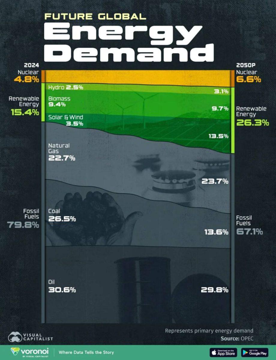 - Нефть останется доминирующим видом топлива в мире, занимая 29,8% мирового спроса на энергию к 2050 году.