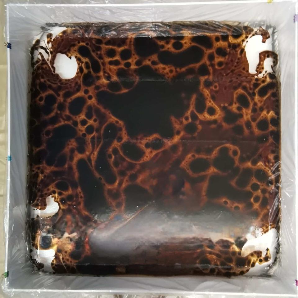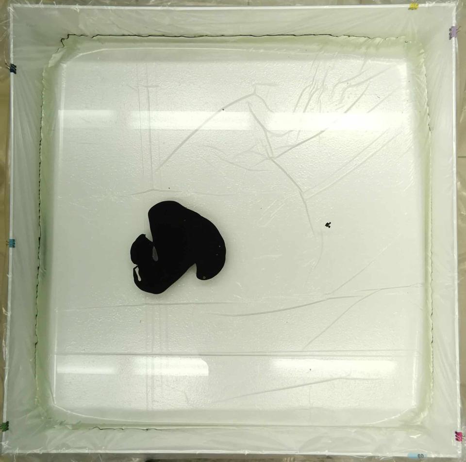Тонкая нефтяная пленка до и после сбора с помощью реагента / © Пресс-служба Губкинского университета